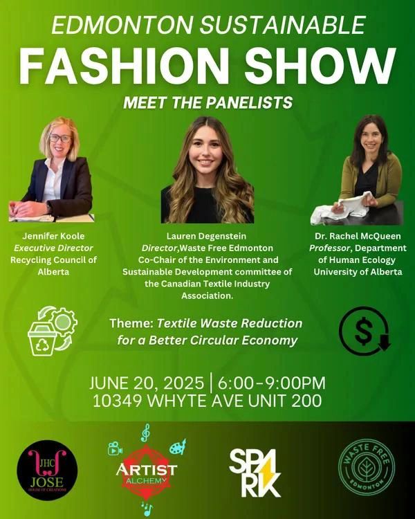 On June 20, I’ll also be joining a panel at the Edmonton Sustainable Fashion Show. We’ll be exploring how circular design and material recovery can shape the future of fashion and textiles — themes we’ll carry into next year’s Explore Circularity Day.