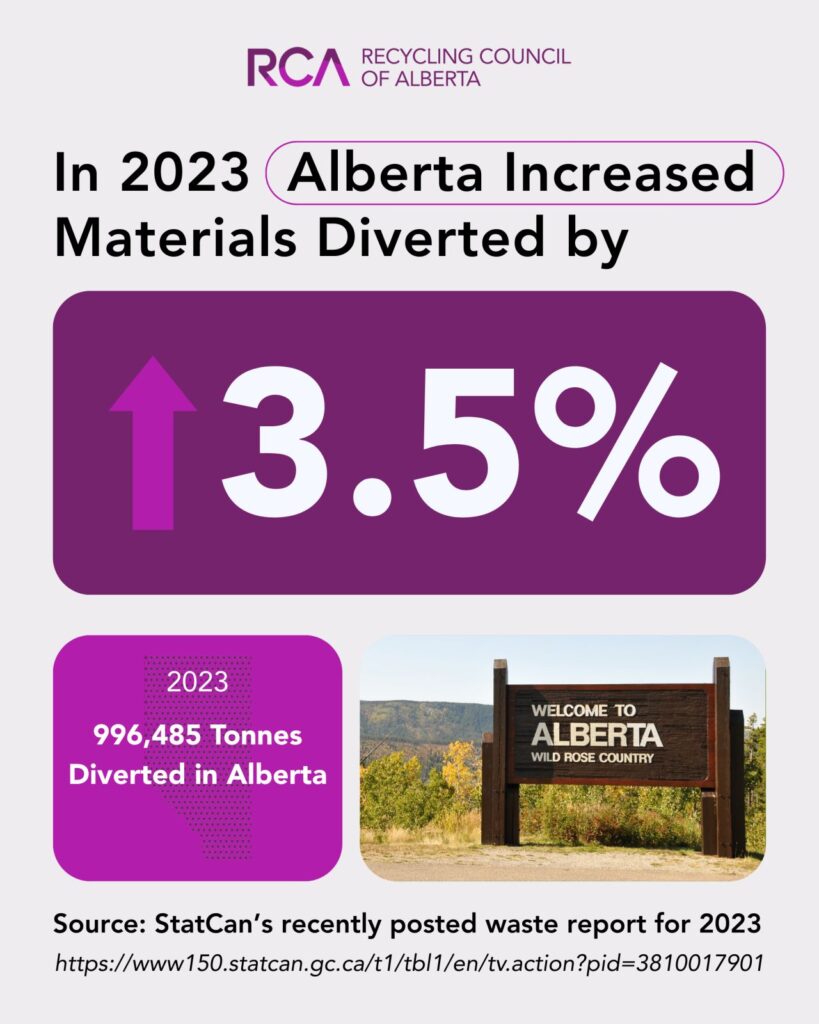 New data from Statistics Canada shows Alberta diverted nearly 1 million tonnes of material from landfill in 2023. That’s a 3.5 percent increase over 2022. These numbers reflect the efforts of municipalities, processors, businesses, and everyday Albertans. Together, we are moving the needle.